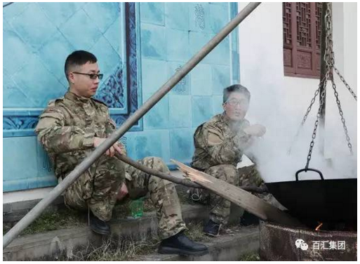 上午的拓展训练结束后,开始起锅煮饭