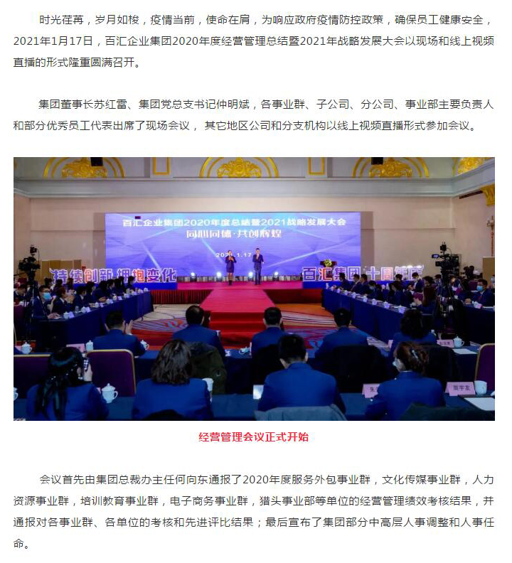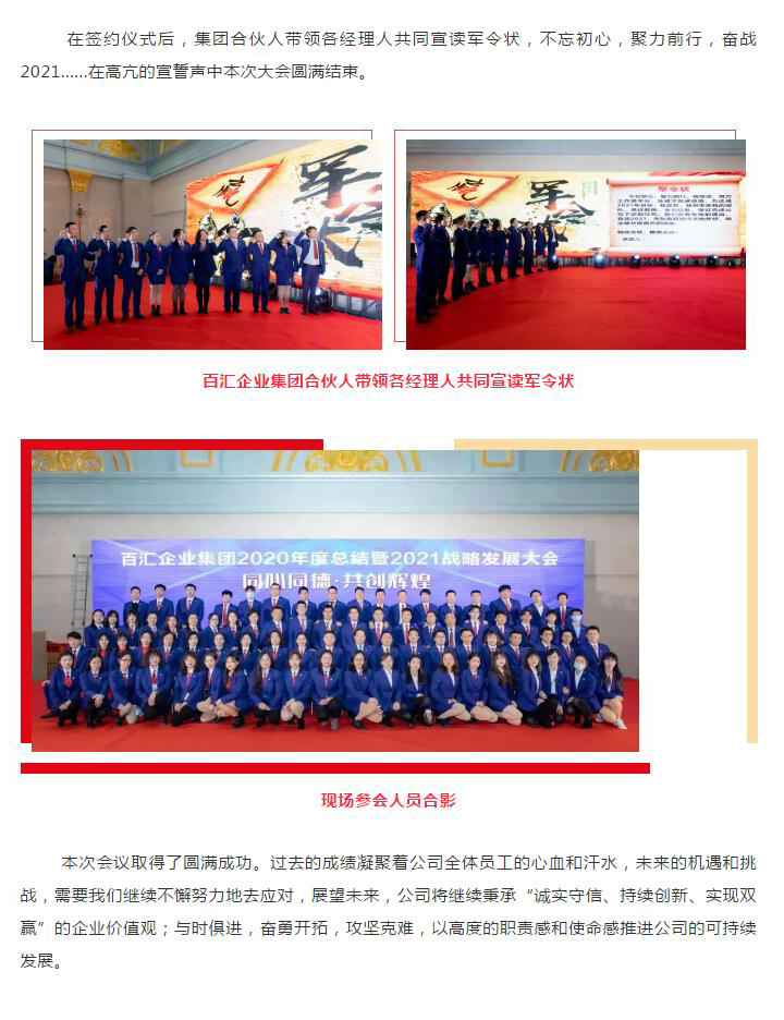 同心同德,共创辉煌 | 百汇企业集团2020年度经营管理总结暨2021年战略发展大会圆满举行