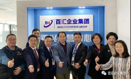 2020年3月31日,嘉善县人社局副局长时江涛等领导一行莅临百汇集团调研企业发展状况并指导工作,集团董事长兼总裁苏红雷、集团副总裁兼党总支书记仲明斌、总裁办主任何向东等领导陪同接待。